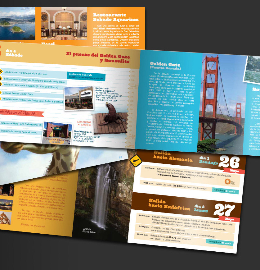The guides were designed as a travel diary, whit the left page arranged with the program for everyday, and the right with detailed info of places to visit, or historical facts.